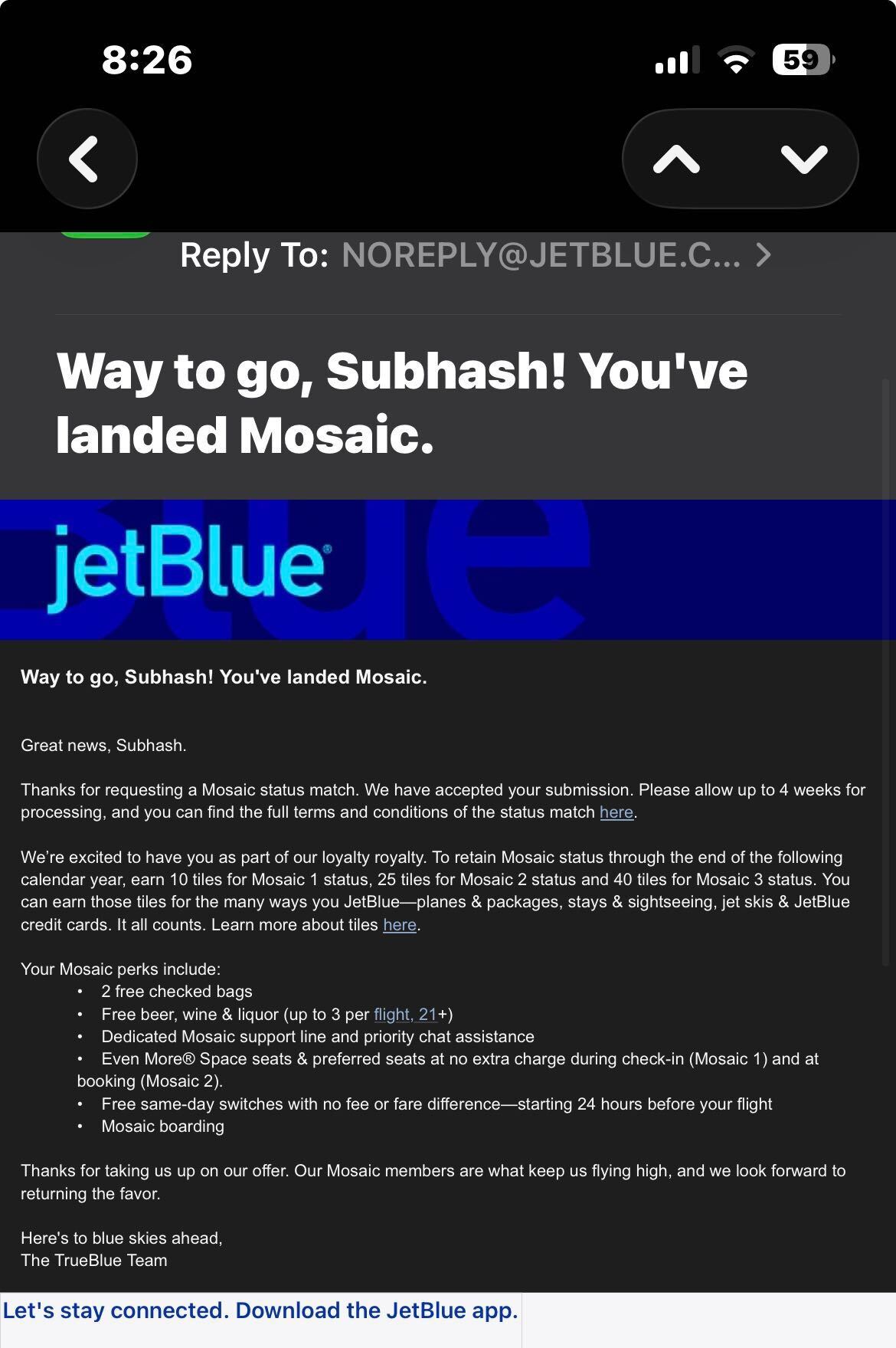 And lastly, we just had to upload the generated screenshot to JetBlue's Status Match portal.